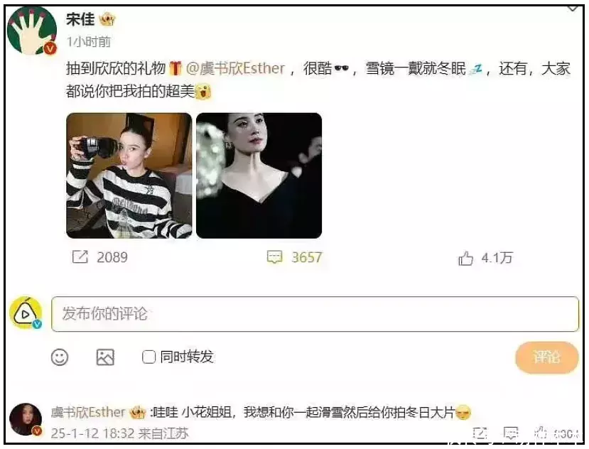 而虞书欣带回去后迟迟没有晒出返图。本以为她是行程太忙忘了这件事,谁知她却出现在宋佳的返图下留言,语气十分亲昵。